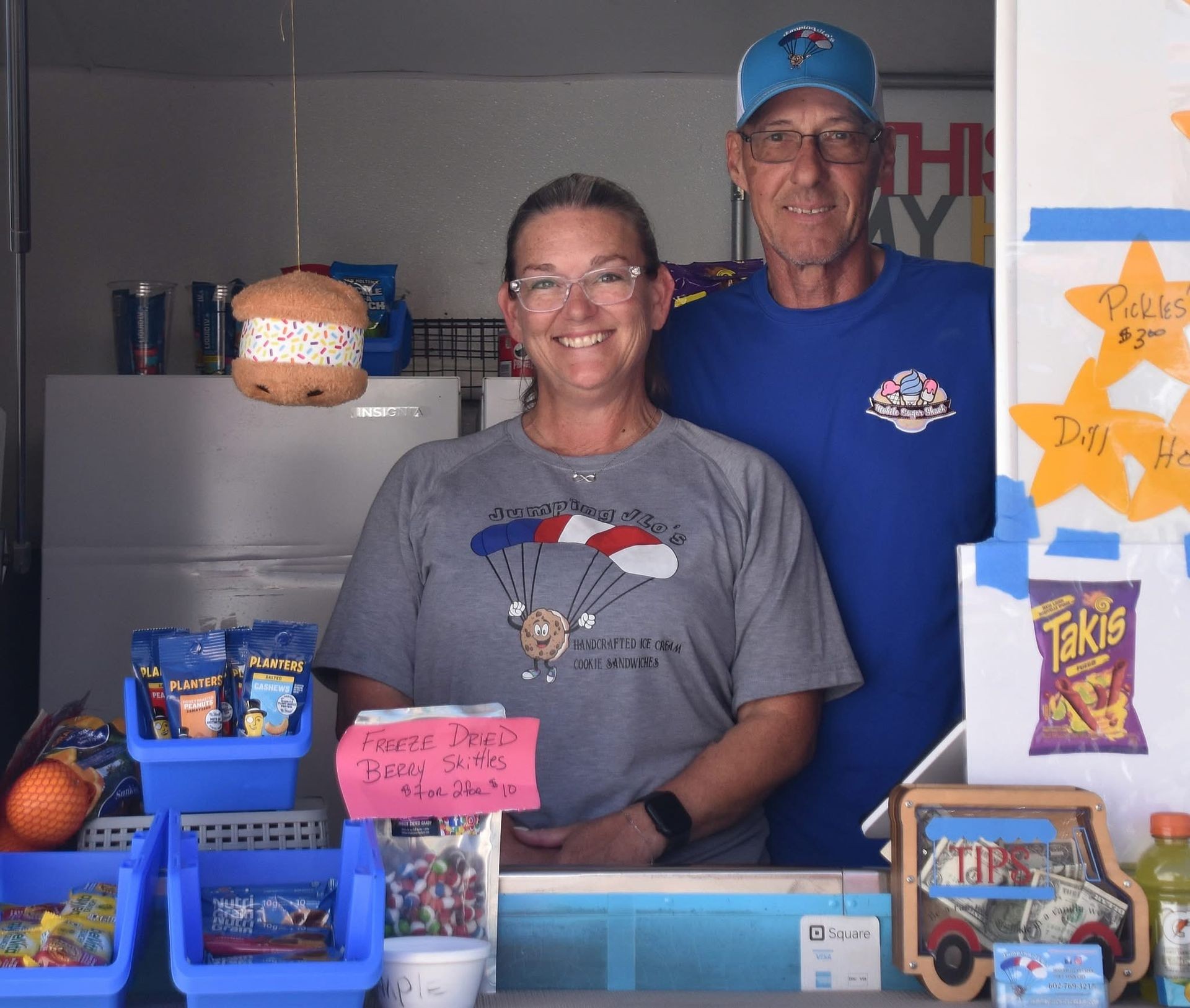 JLO’s adventurous spirit — including her love for skydiving — inspired the idea of Chip the Cookie parachuting into your party. Together with Raymond, she turned that playful vision into a real family business. Proudly veteran-owned and community-driven, we bring handcrafted cookie sandwiches, nostalgic novelties, and big smiles to schools, parties, and neighborhoods across San Tan Valley.